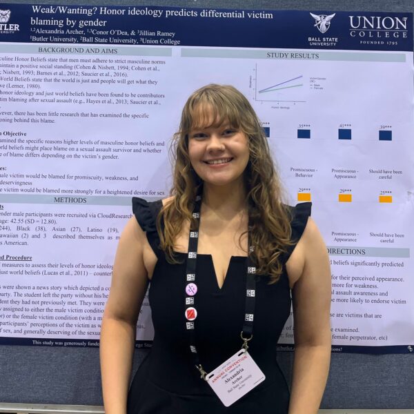 Alexandria Archer is a first-year graduate student in the Clinical Psychology M.A. program. She received her B.A. in Criminology and Psychology (w/High Distinction) from Butler University in Indianapolis, IN. Alexandria’s research broadly examines masculine socialization, masculine honor ideology, and hegemonic masculinity and their influence on deviant behaviors and men’s mental health. After graduating, Alexandria plans to pursue a PhD in Clinical Psychology.