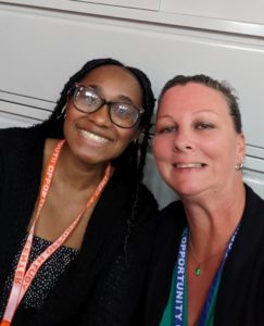 - P2 GA Collete Dellawala sharing her thinking with Yasmine Griffin during the 2022 Writing Retreat
