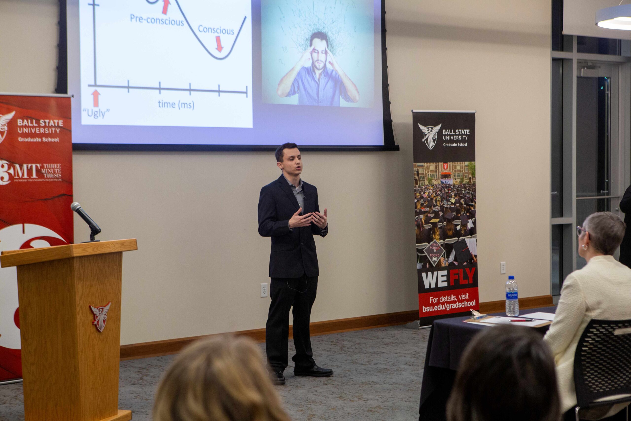 - Josh Grzywana presenting his thesis “The Impact of Maintaining Negative Memories on the Depressed and Anxious Brain” at the 2020 Three Minute Thesis Competition