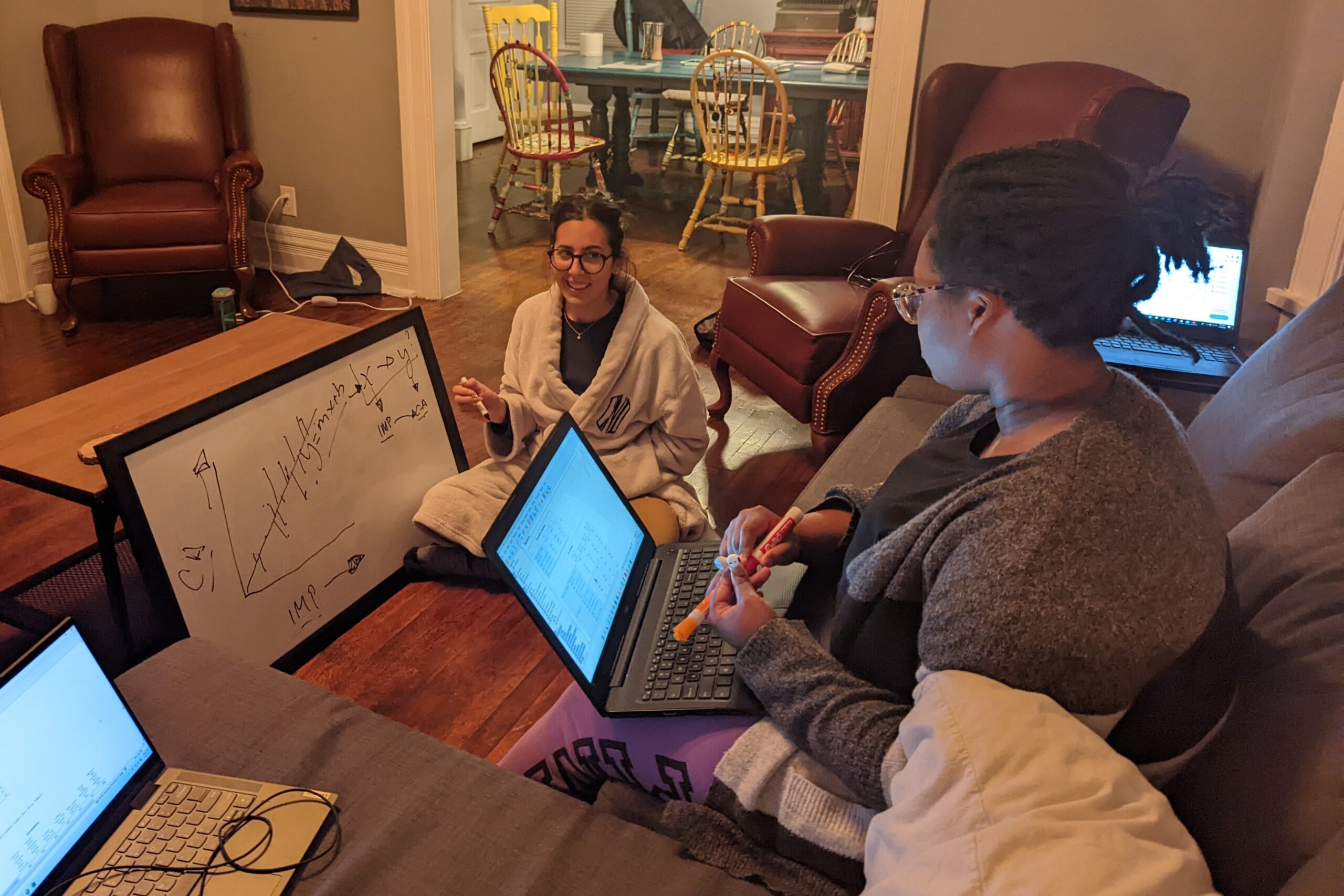 - Emily Cronk and Ashyia Riley working on their lab training assignments.